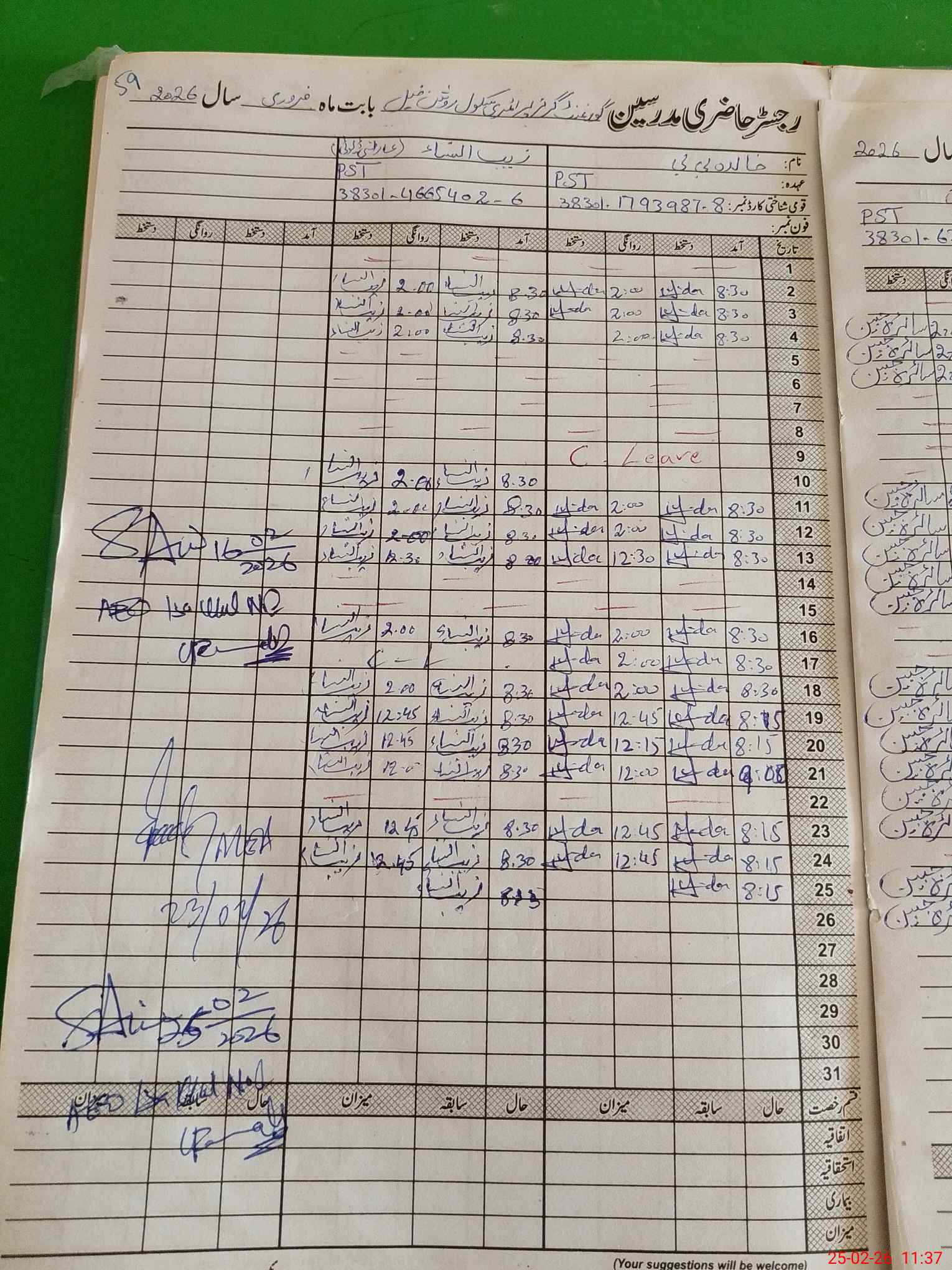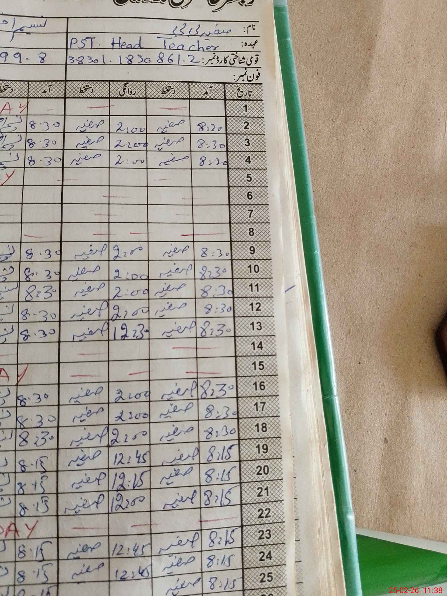 | Name: SA**** BI**** Designation: (School Headmaster's/Headmistress's) PST Phone/Cell Number: 03**** |