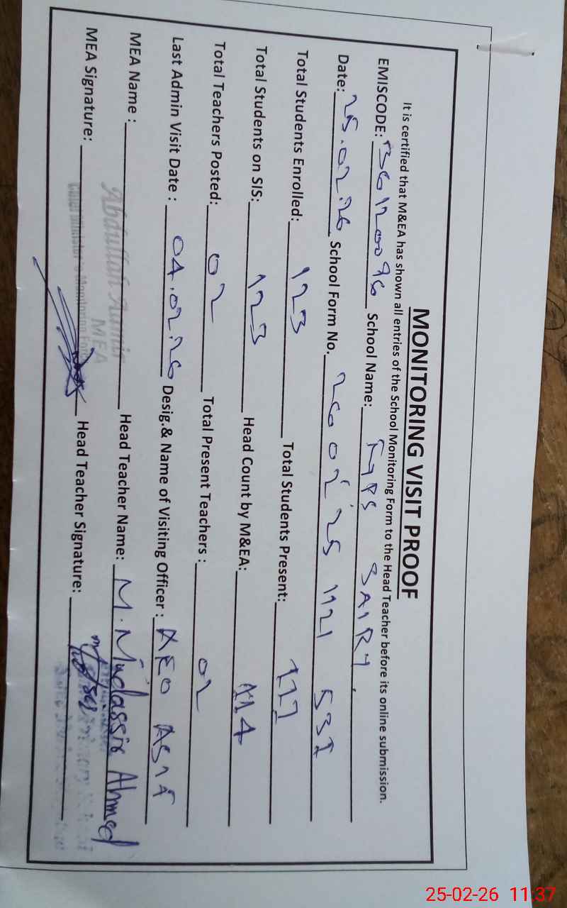 | EMIS Code: 36120096 | Name of School: GPS SAIRY P/O JALAL PUR KHAKHI | |||