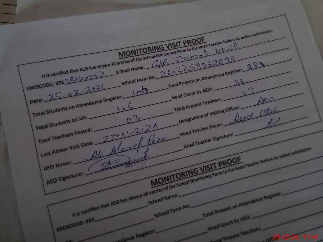 | EMIS Code: 38220052 | Name of School: GPS JAMAL KHAIL | |||