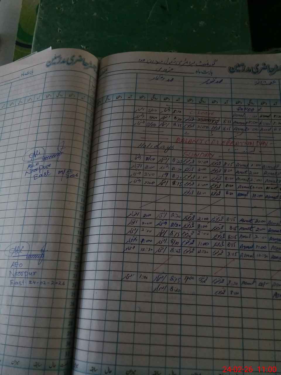 | CNIC | Full Name | Designation | R/C | Absence During Last Calender Month |