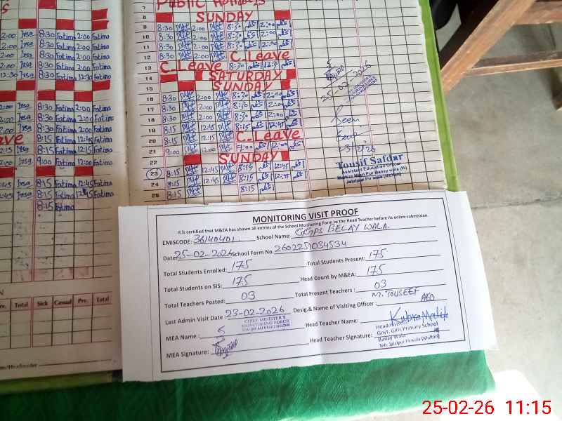 | EMIS Code: 36140401 | Name of School: GGPS BAILAY WALA | |||