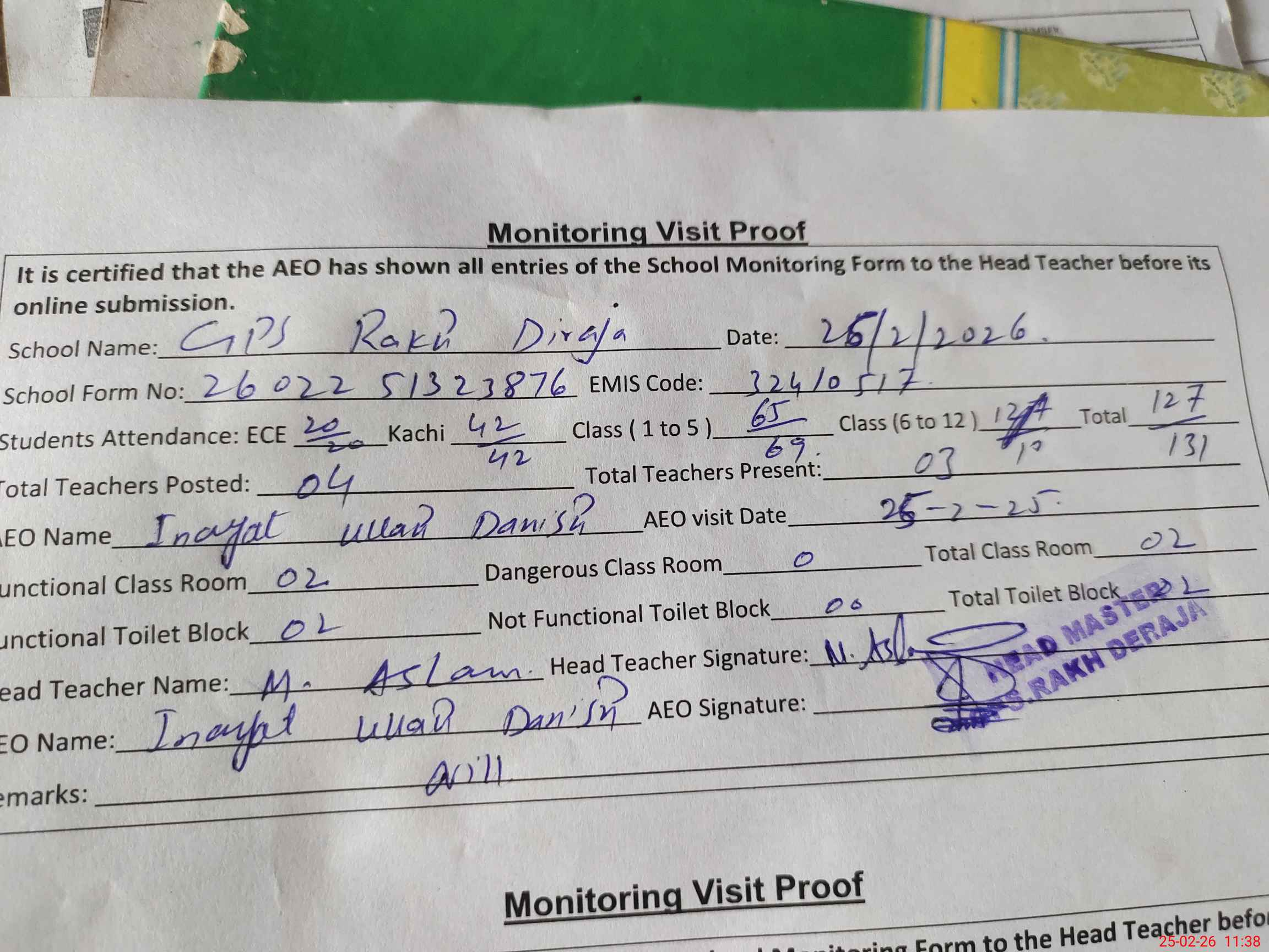 | EMIS Code: 32410517 | Name of School: GPS RAKH DARAIJA KOLOI WALA | |||