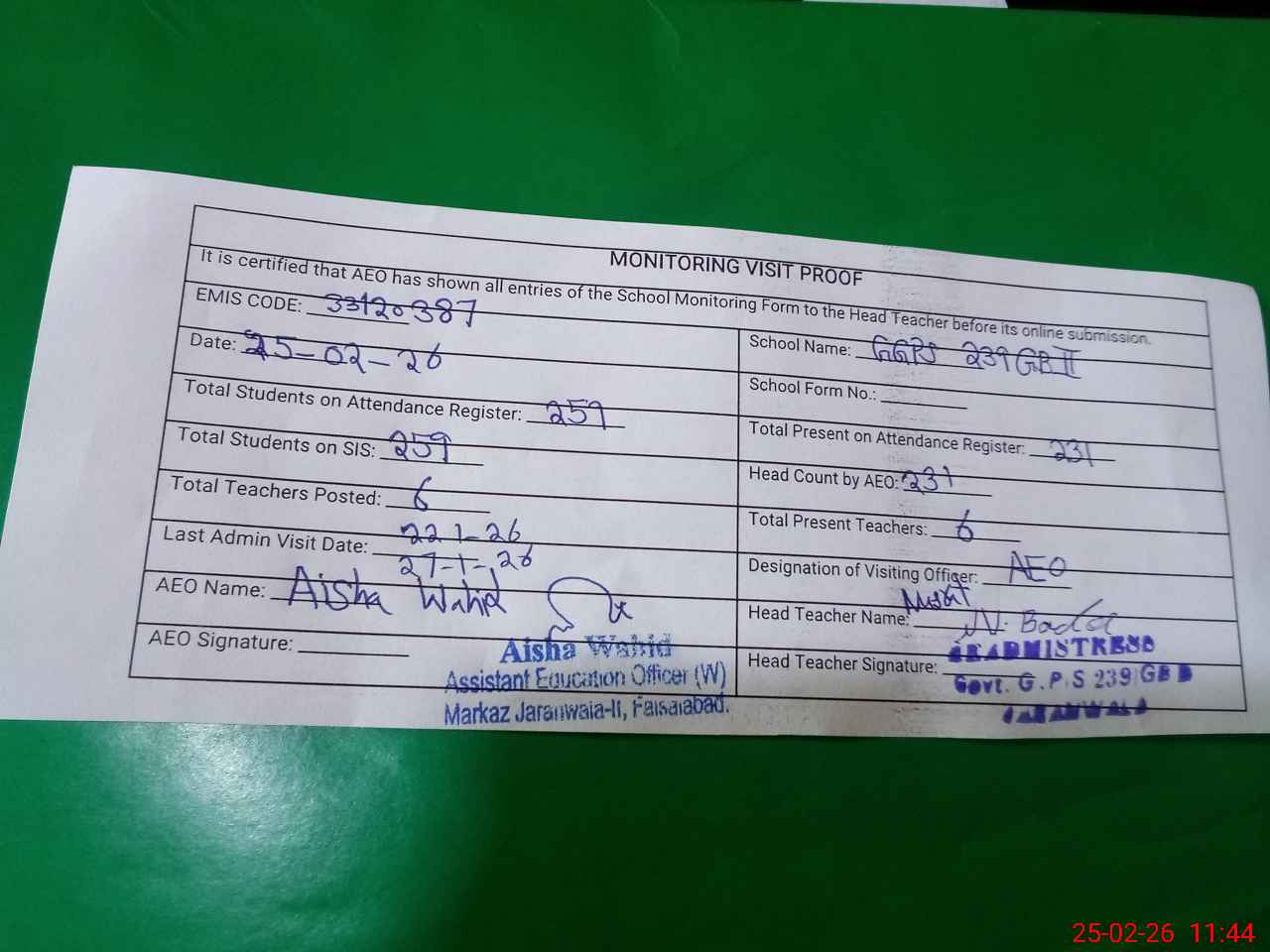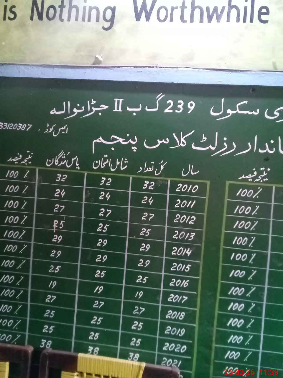 | EMIS Code: 33120387 | Name of School: GGPS CHAK 239 GB II JARANWLA | |||