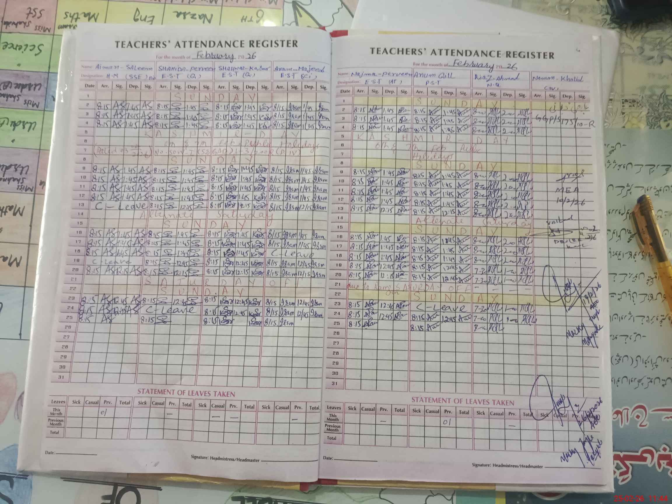 | Attendance Register | Head Teacher | MEA with School | Visit Proof |