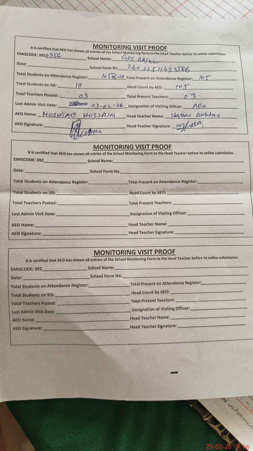 | EMIS Code: 39320356 | Name of School: GPS CHAK 6-A/4-L | |||