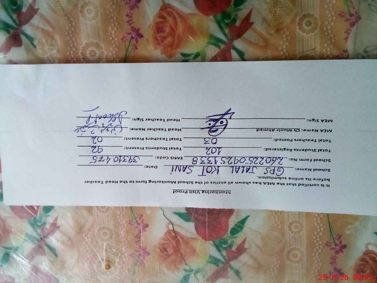 | EMIS Code: 39310475 | Name of School: GPS JALAL KOT SANI | |||