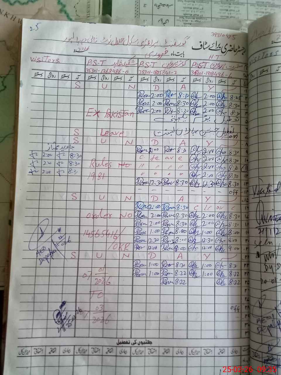 | Leave | Duty | Absent | Maternity | Medical | Ex- Pak |