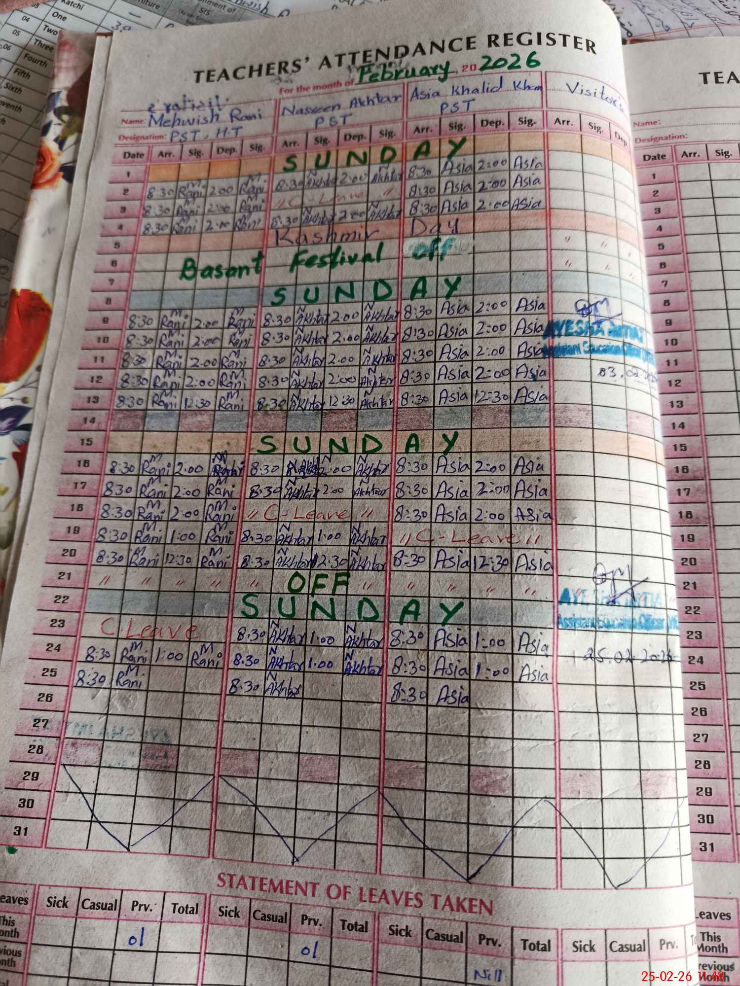 | Leave | Duty | Absent | Maternity | Medical | Ex- Pak |