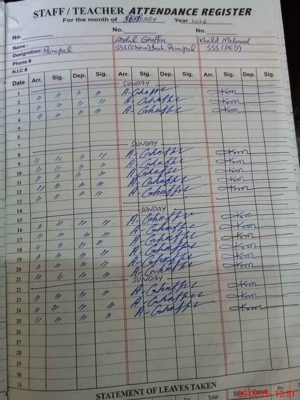 | Name: Ab**** Gh**** Designation: (School Headmaster's/Headmistress's) Incharge PRINCIPAL Phone/Cell Number: 03**** |