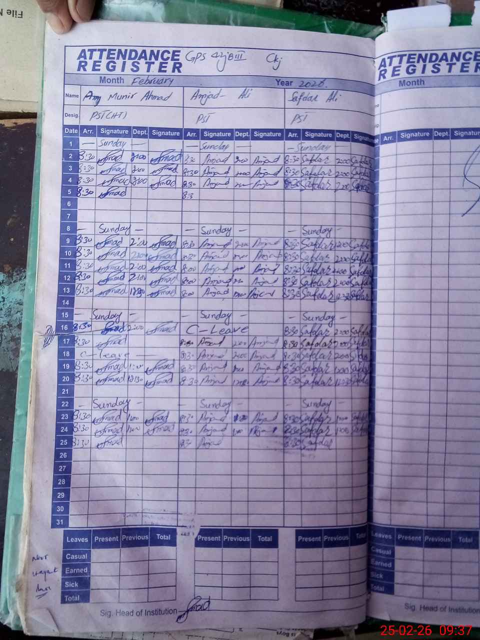 | Remarks (Use Separate Page if Required): FTF register not maintained WEF May 2025 all Data verbally given to MEA also Roznamcha not maintained Necessary action may please be taken as necessary | |||||