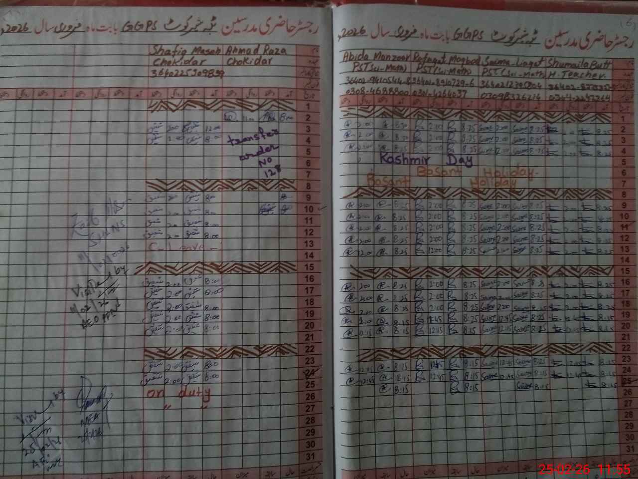 | Name: Sh**** Bu**** Designation: (School Headmaster's/Headmistress's) PST Phone/Cell Number: 03**** |