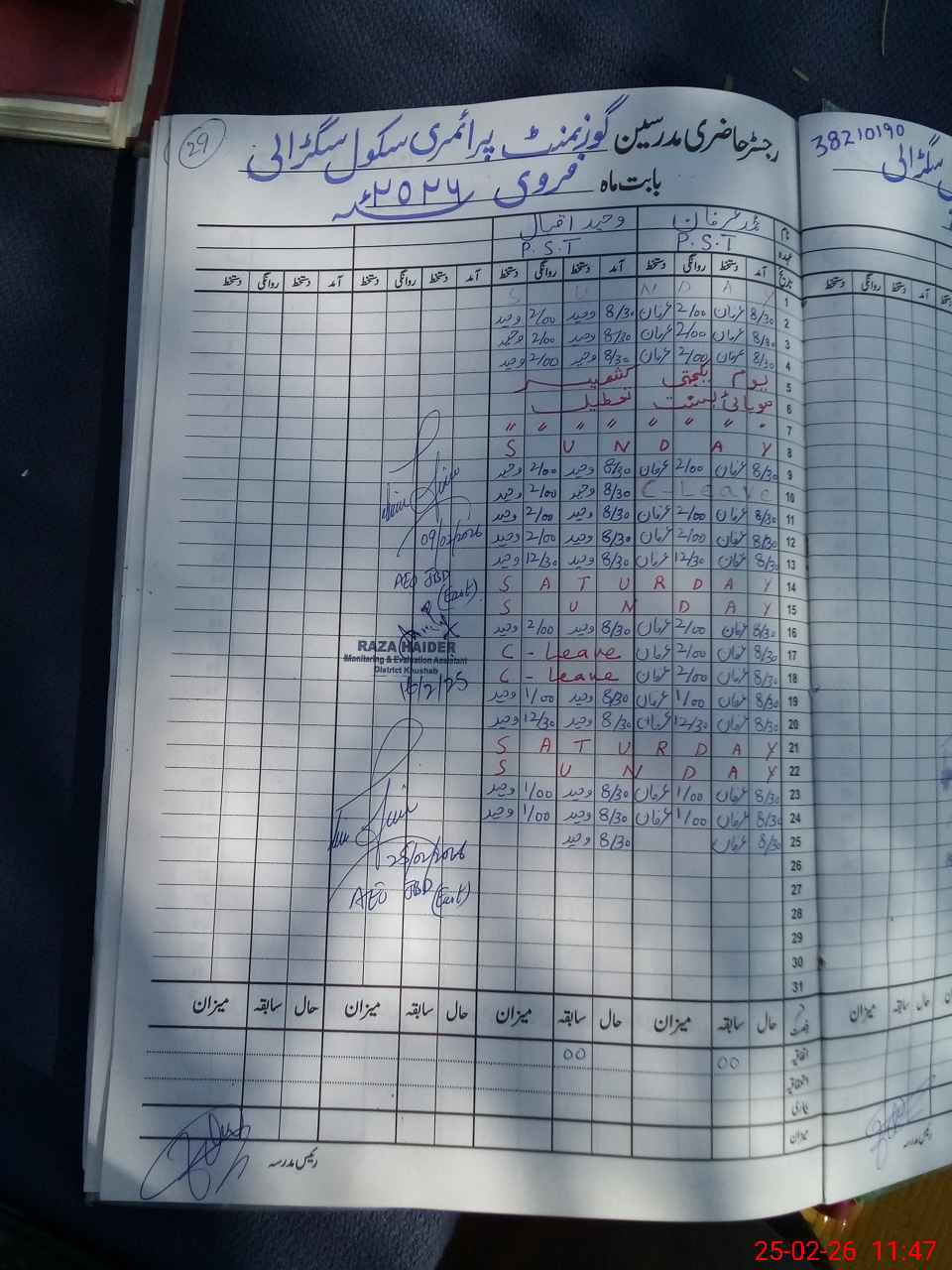 | Name: Mu**** Ir**** Designation: (School Headmaster's/Headmistress's) PST Phone/Cell Number: 03**** |