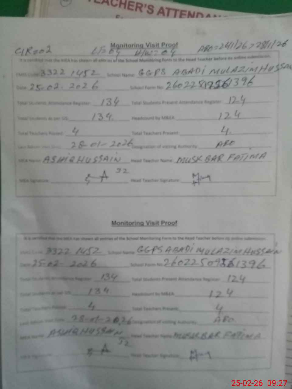 | EMIS Code: 33221452 | Name of School: GGPS ABADI MULAZIM HUSSAIN | |||