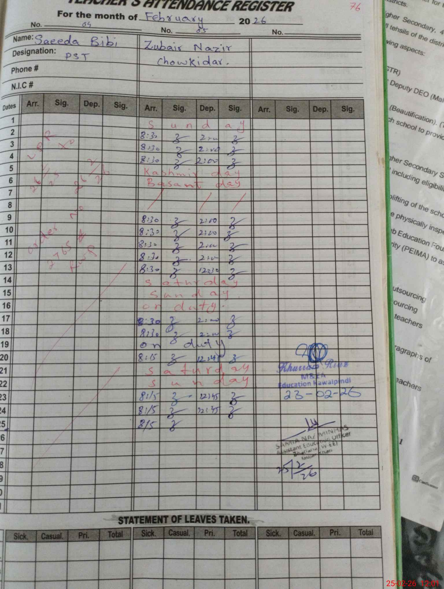 | Name: Fa**** Bi**** Designation: (School Headmaster's/Headmistress's) PST Phone/Cell Number: 03**** |