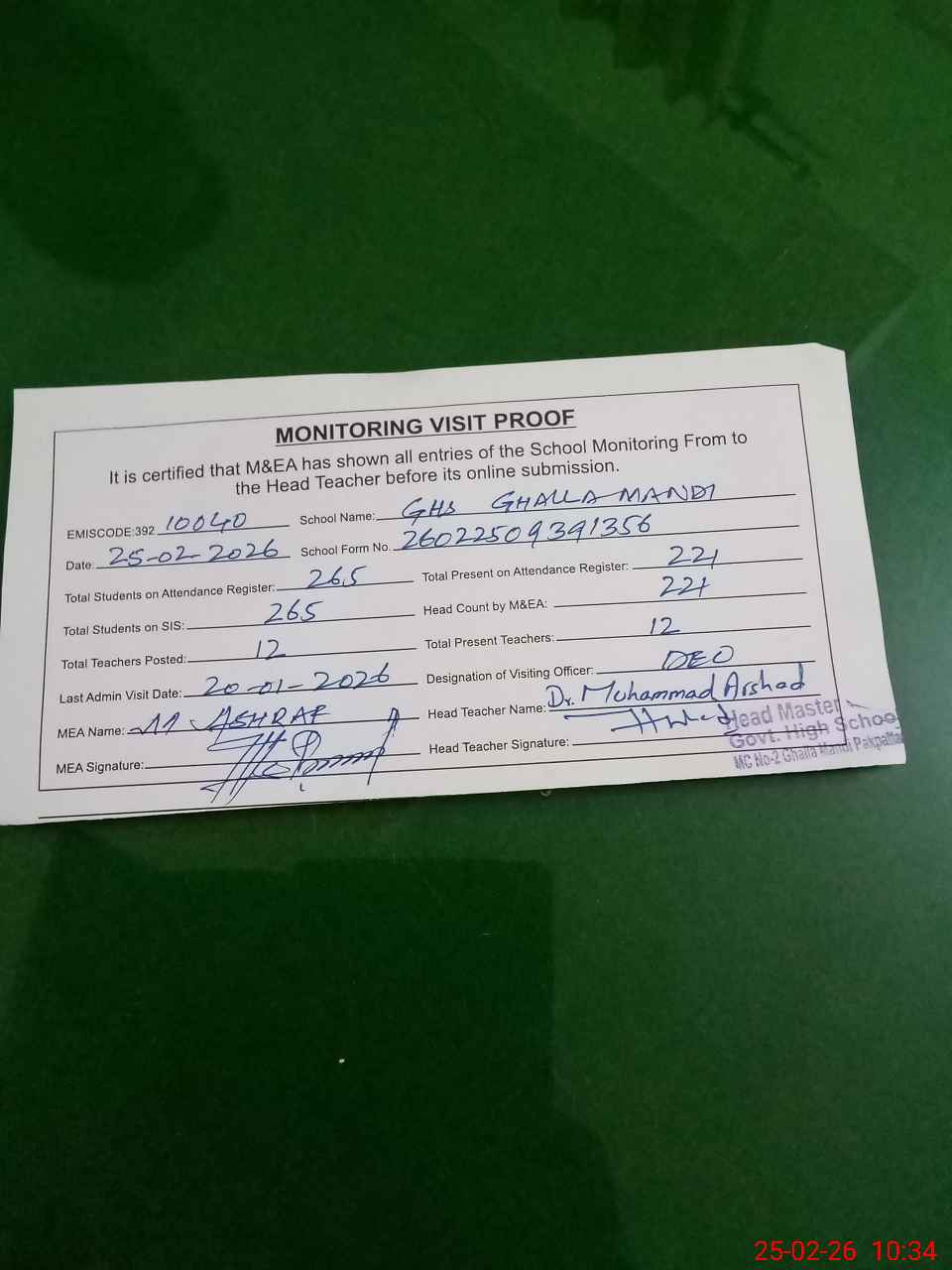 | EMIS Code: 39210040 | Name of School: GHS MC NO. 2 GHALLA MANDI | |||