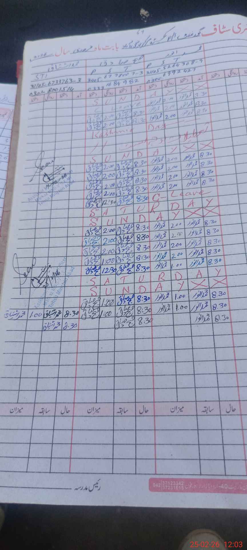 | Name: Mu**** An**** Designation: (School Headmaster's/Headmistress's) PST Phone/Cell Number: 03**** |