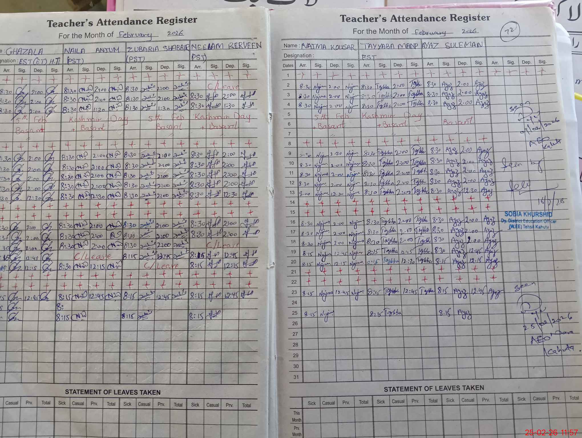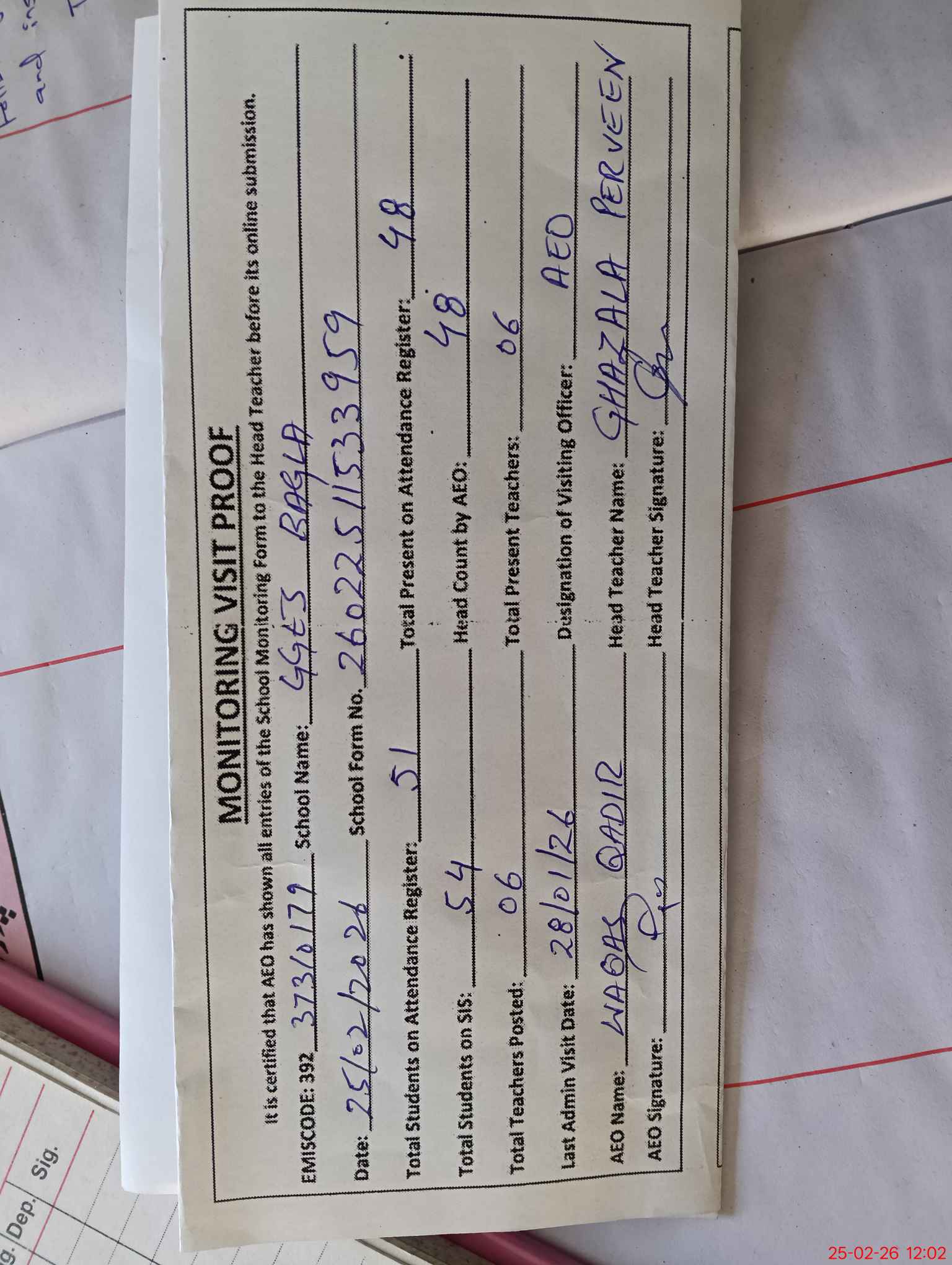 | Attendance Register | Head Teacher | MEA with School | Visit Proof |