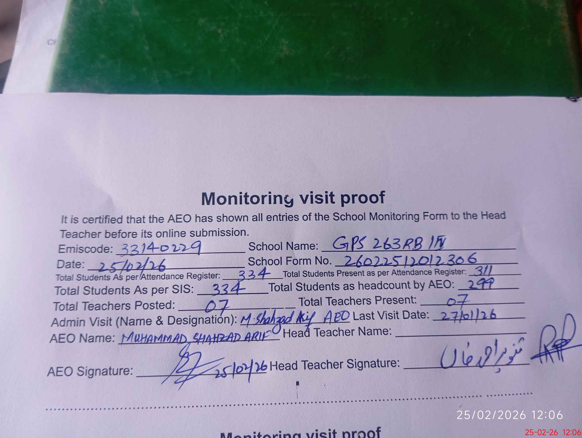 | EMIS Code: 33140229 | Name of School: GPS CHAK 263 RB IV DGJ KOT | |||