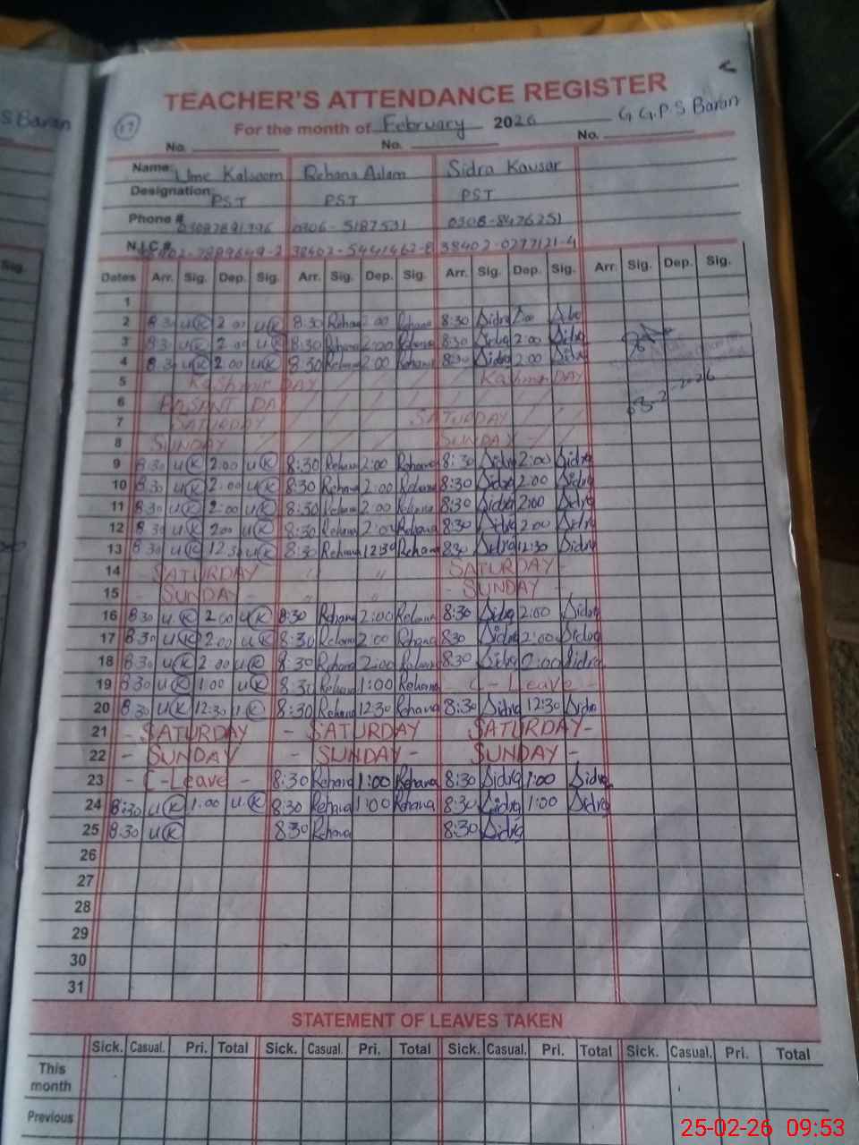 | Name: UM**** KA**** Designation: (School Headmaster's/Headmistress's) PST Phone/Cell Number: 03**** |