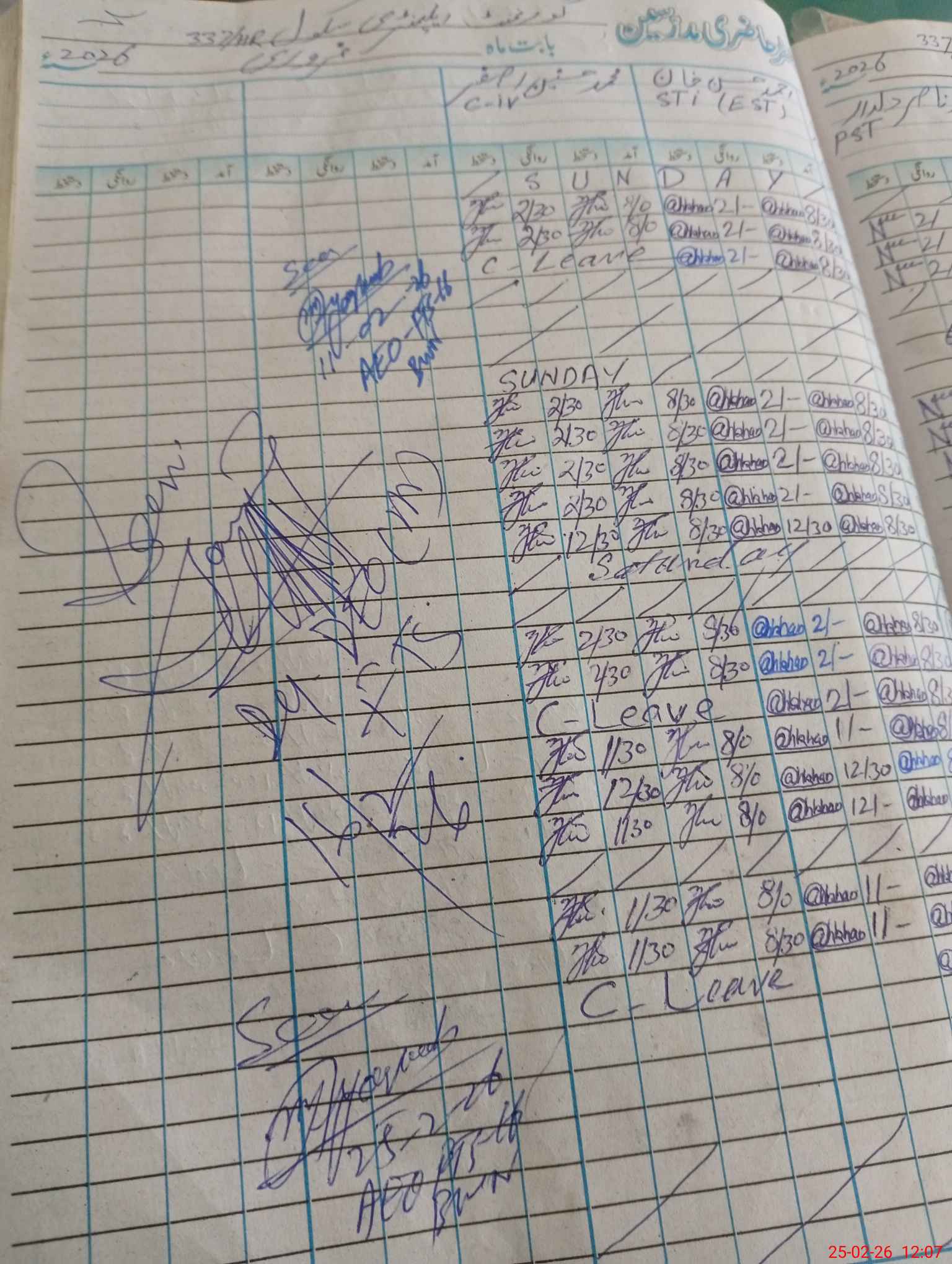 | CNIC | Full Name | Designation | R/C | Absence During Last Calender Month |