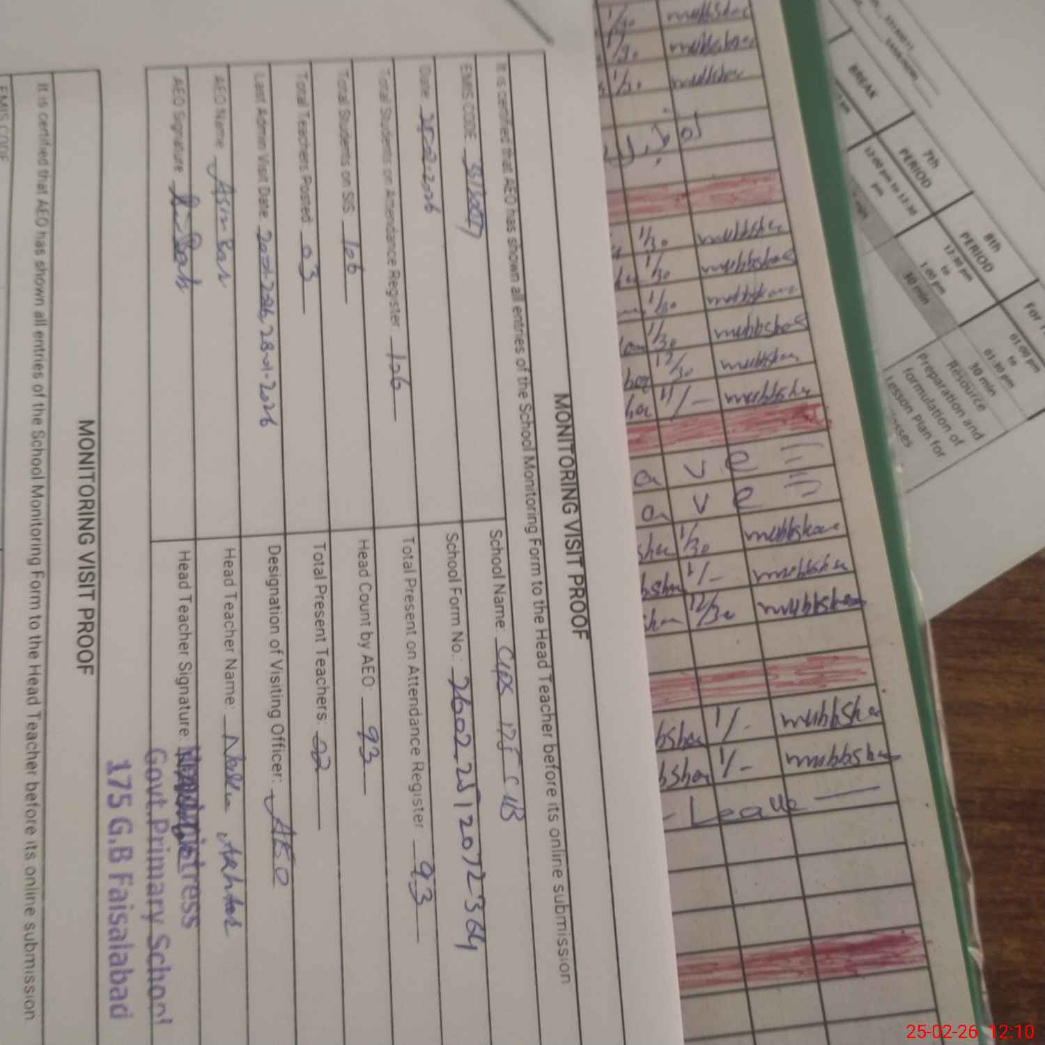 | Certified that this School was Inspected by the Undersigned MEA/DMO Today and the Information Stated Above is as Per Record. | |||||