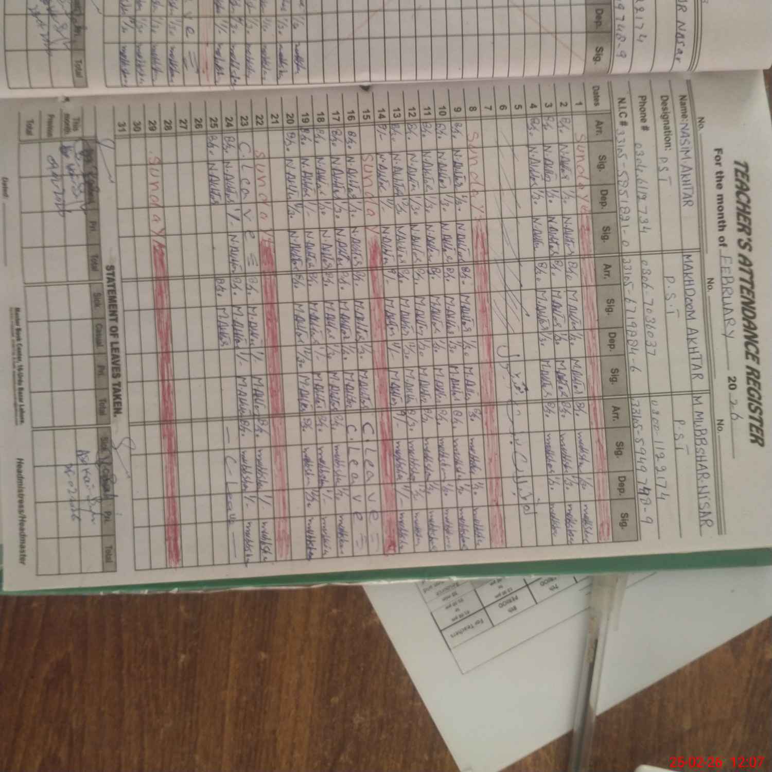 | Name: NA**** AK**** Designation: (School Headmaster's/Headmistress's) PST Phone/Cell Number: 03**** |