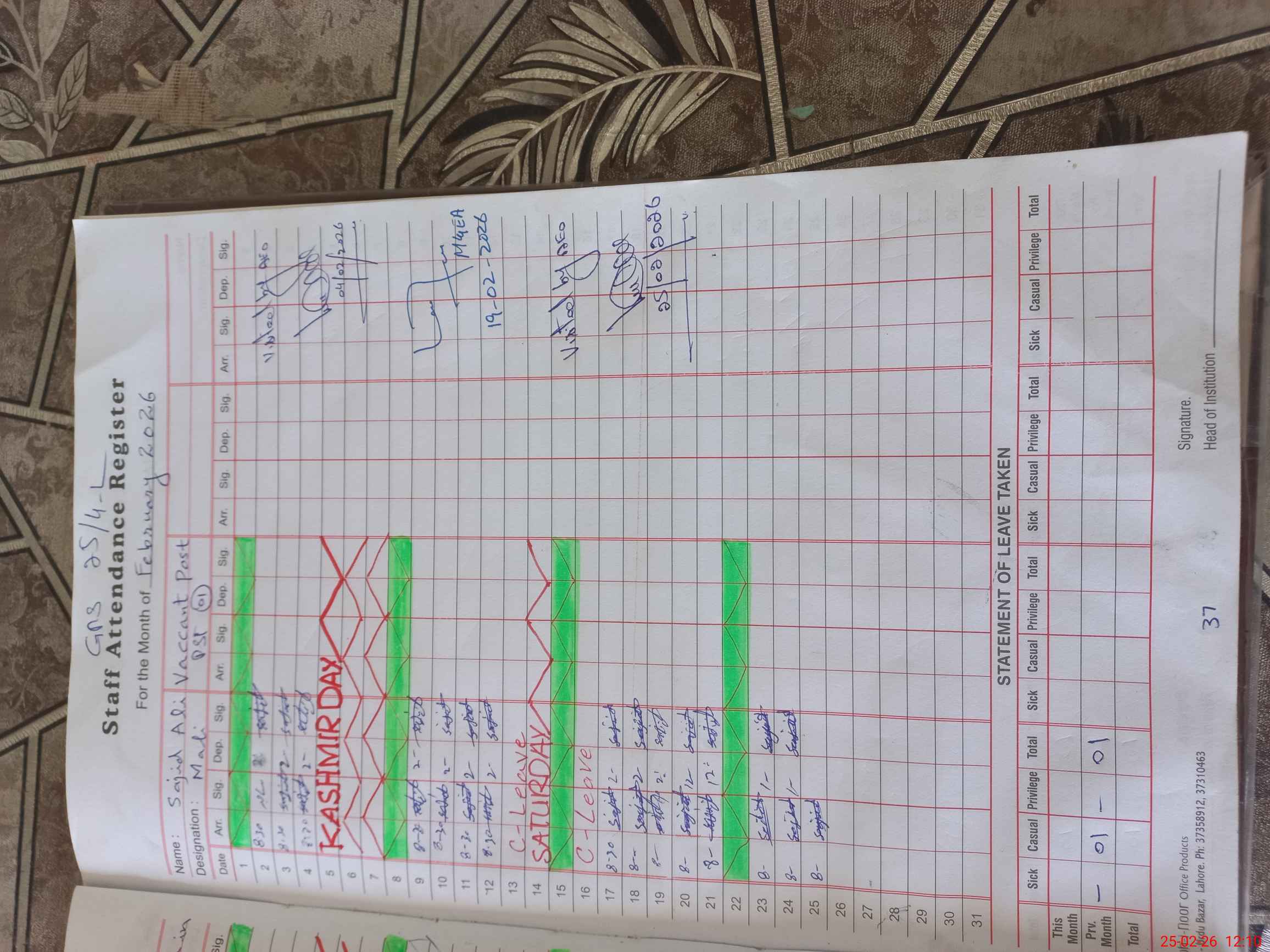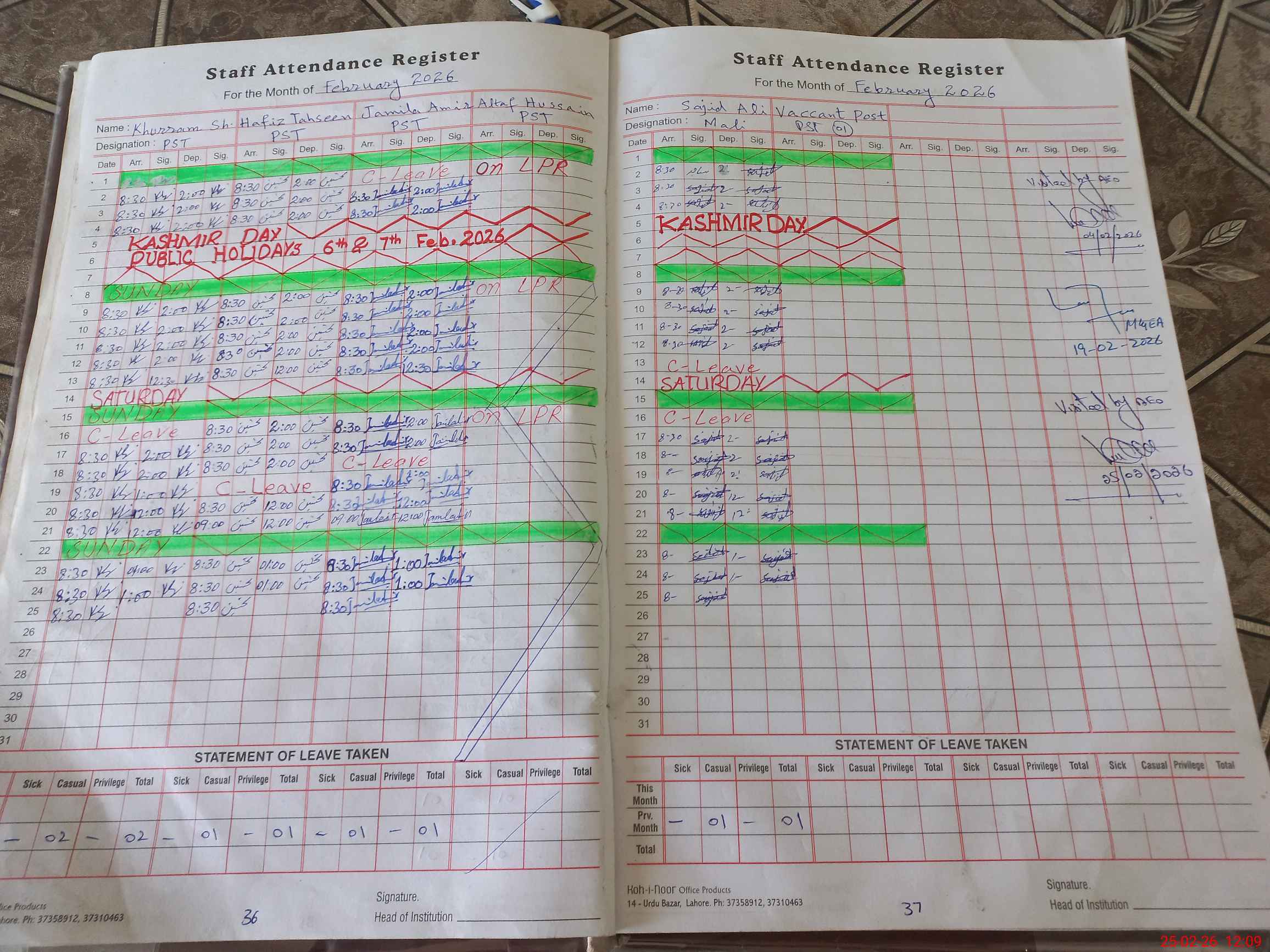 | Name: KH**** SH**** Designation: (School Headmaster's/Headmistress's) PST Phone/Cell Number: 03**** |