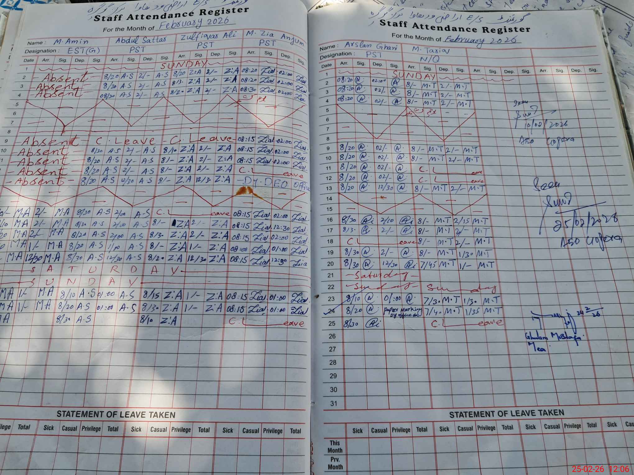 | CNIC | Full Name | Designation | R/C | Absence During Last Calender Month |