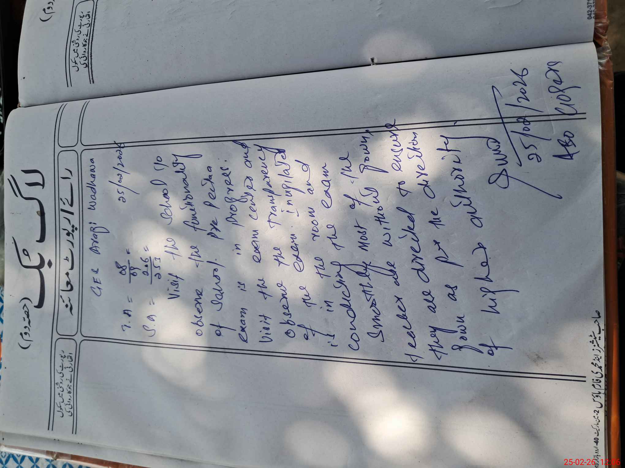 | Monitoring Date: 25-02-2026 | Start Time: 25-02-2026 11:26 AM | End Time: 25-02-2026 12:11 PM | Name of MEA: Sa**** Ul**** | |