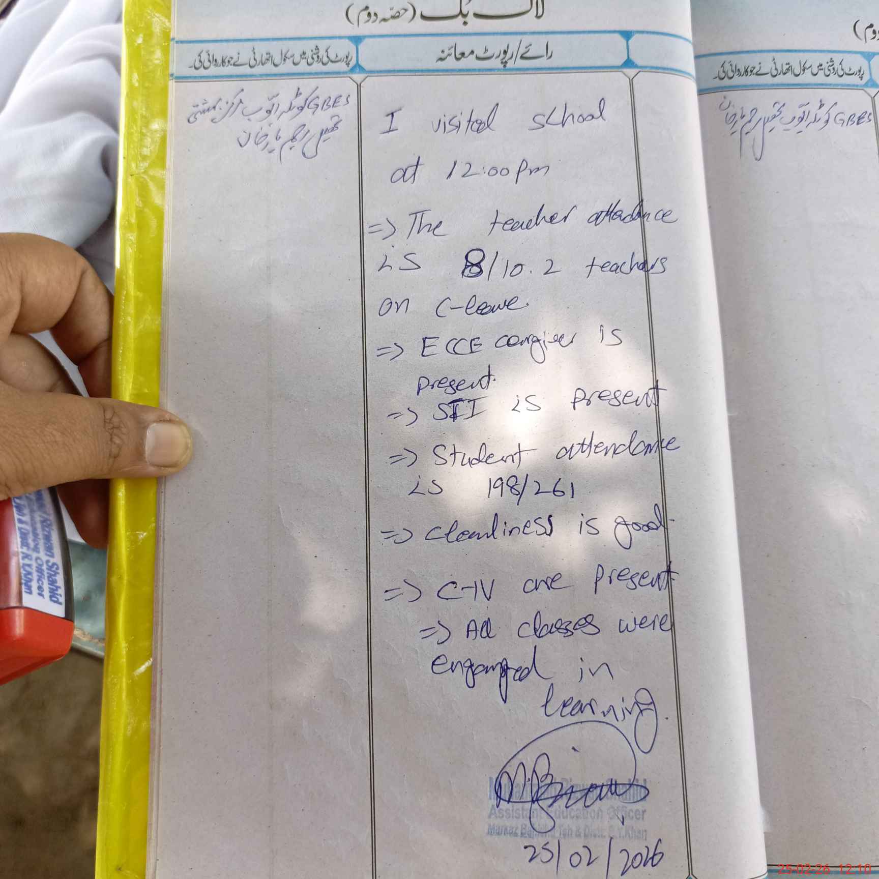 | Attendance Register | Head Teacher | MEA with School | Visit Proof |