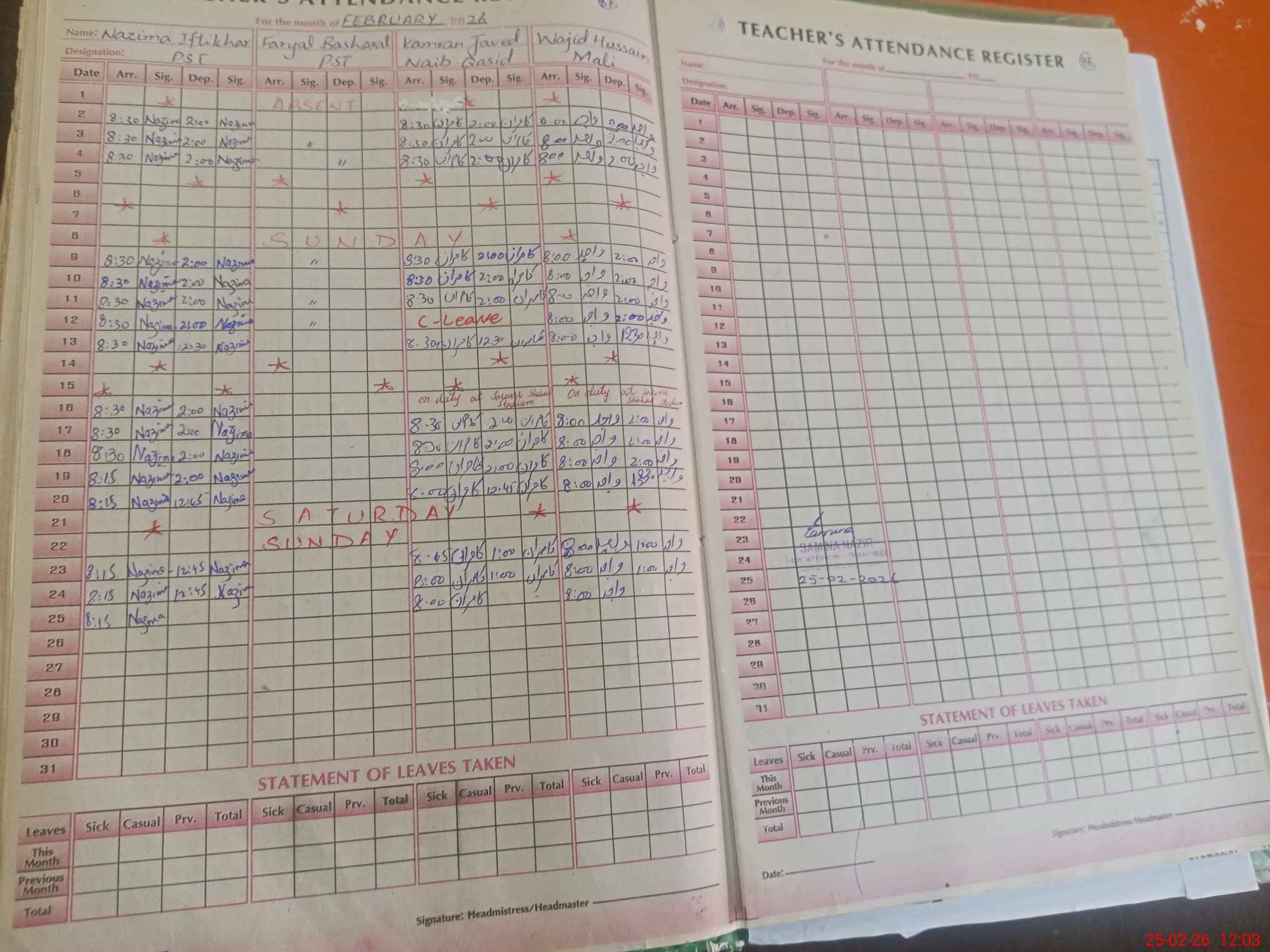 | 37**** | Fa**** Ba**** | PST Arts | Regular | 0 | 0 | 0 | 0 | 0 | 0 | 0 | 0 | 0 | Absent (Un-Authorized) |