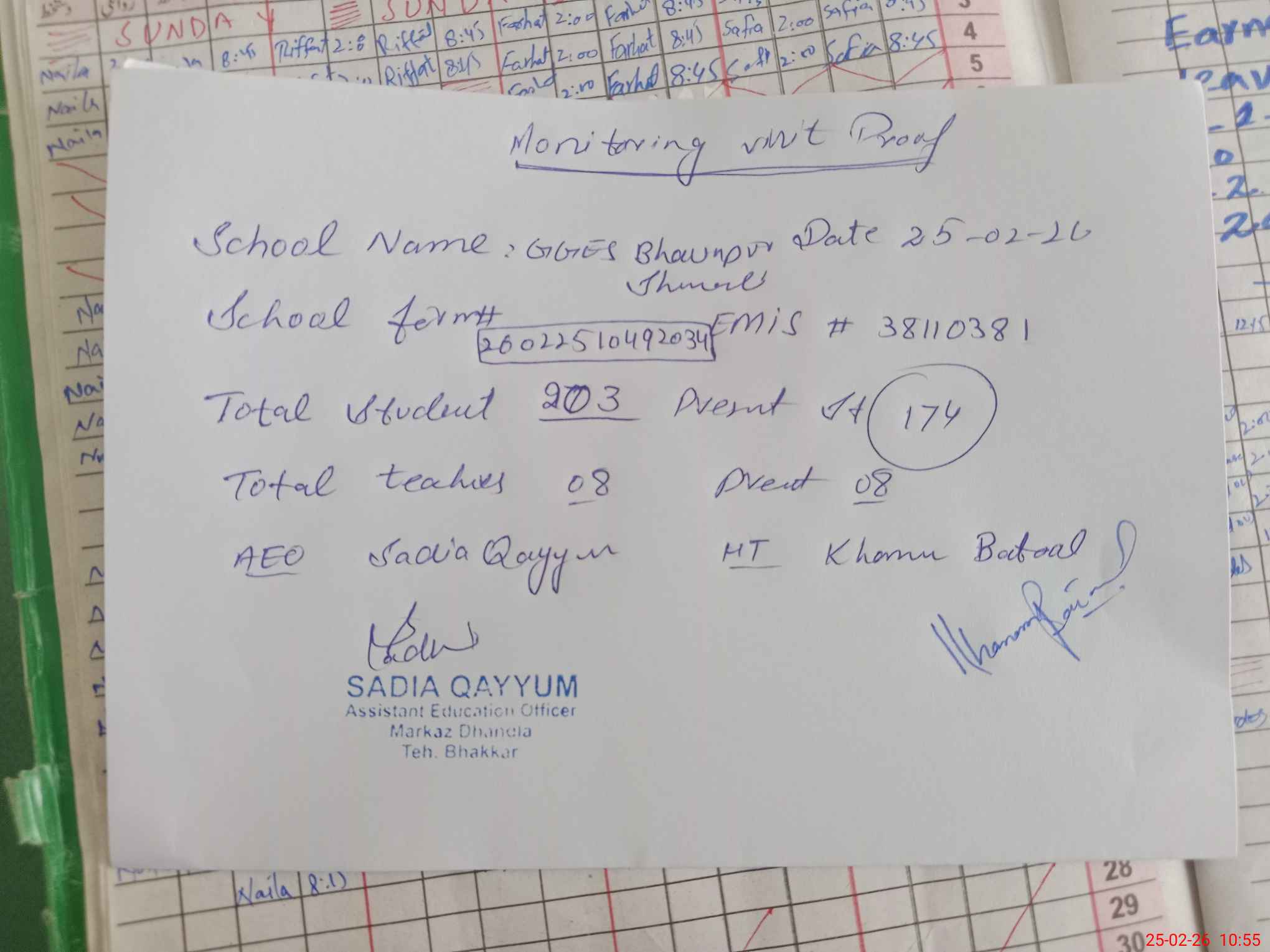 | Certified that this School was Inspected by the Undersigned MEA/DMO Today and the Information Stated Above is as Per Record. | |||||