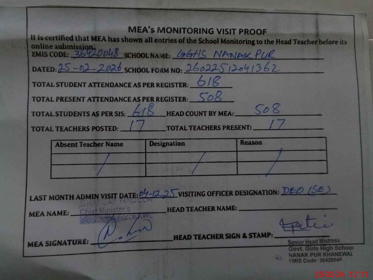 | EMIS Code: 36420048 | Name of School: GGHS NANAK PUR, KHANEWAL | |||