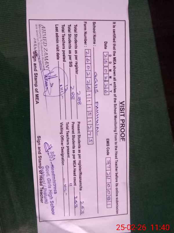 | EMIS Code: 37210081 | Name of School: GGHS PAKHWAL | |||