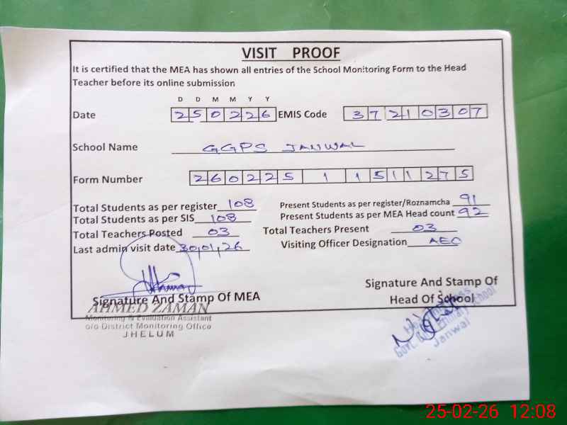 | EMIS Code: 37210307 | Name of School: GGPS JANWAL | |||