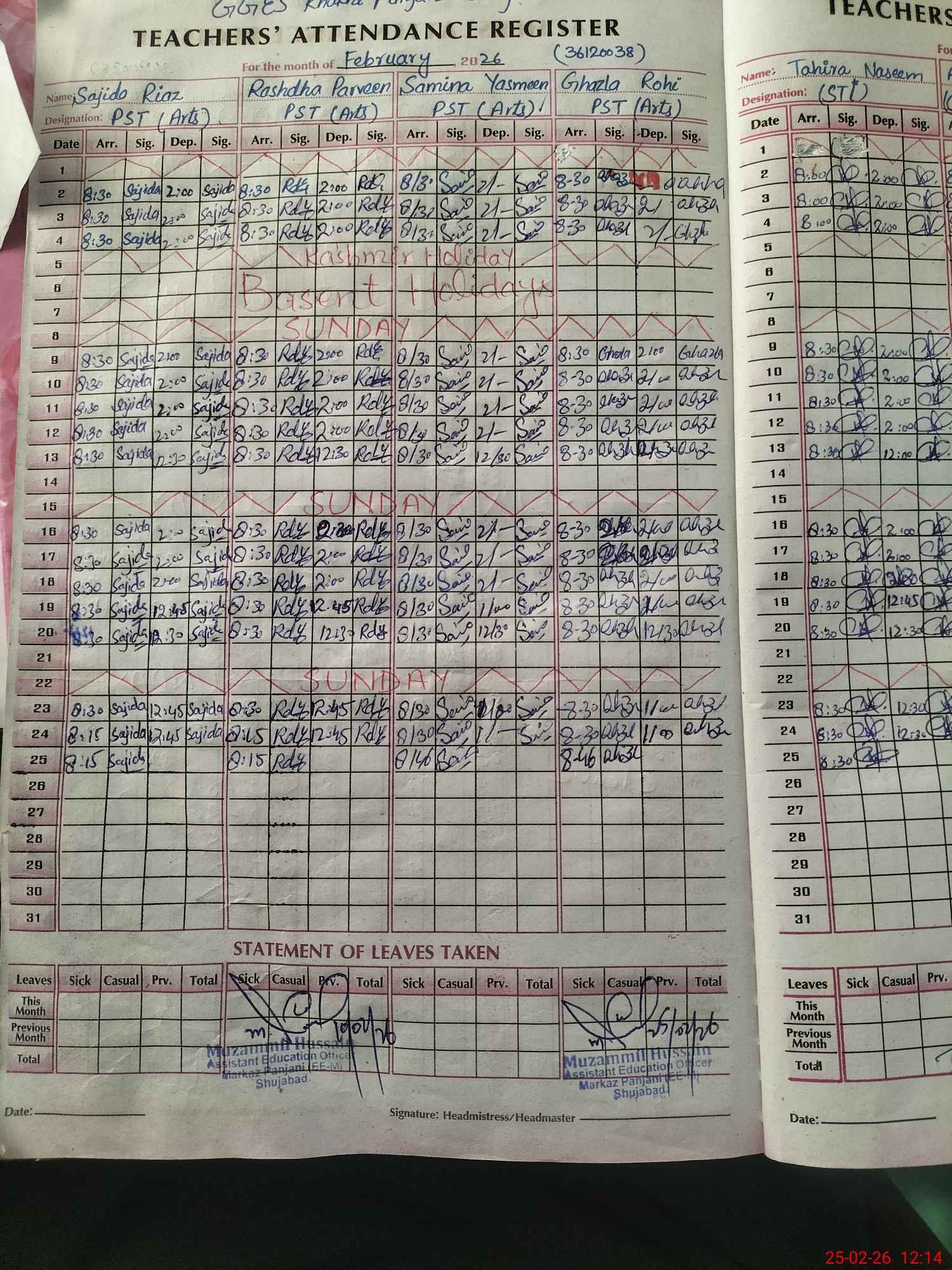 | Name: Sy**** Sa**** Bi**** Designation: (School Headmaster's/Headmistress's) Inch Head Phone/Cell Number: 03**** |