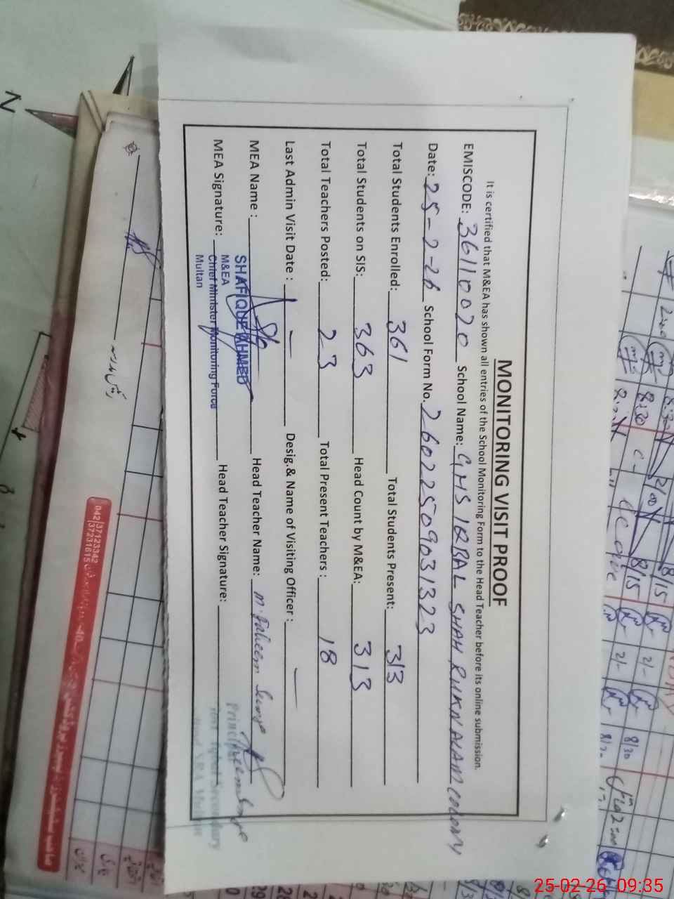 | EMIS Code: 36110020 | Name of School: GHS IQBAL SHAH RUKN ALAM COLONY BLOCK-B MULTAN | |||