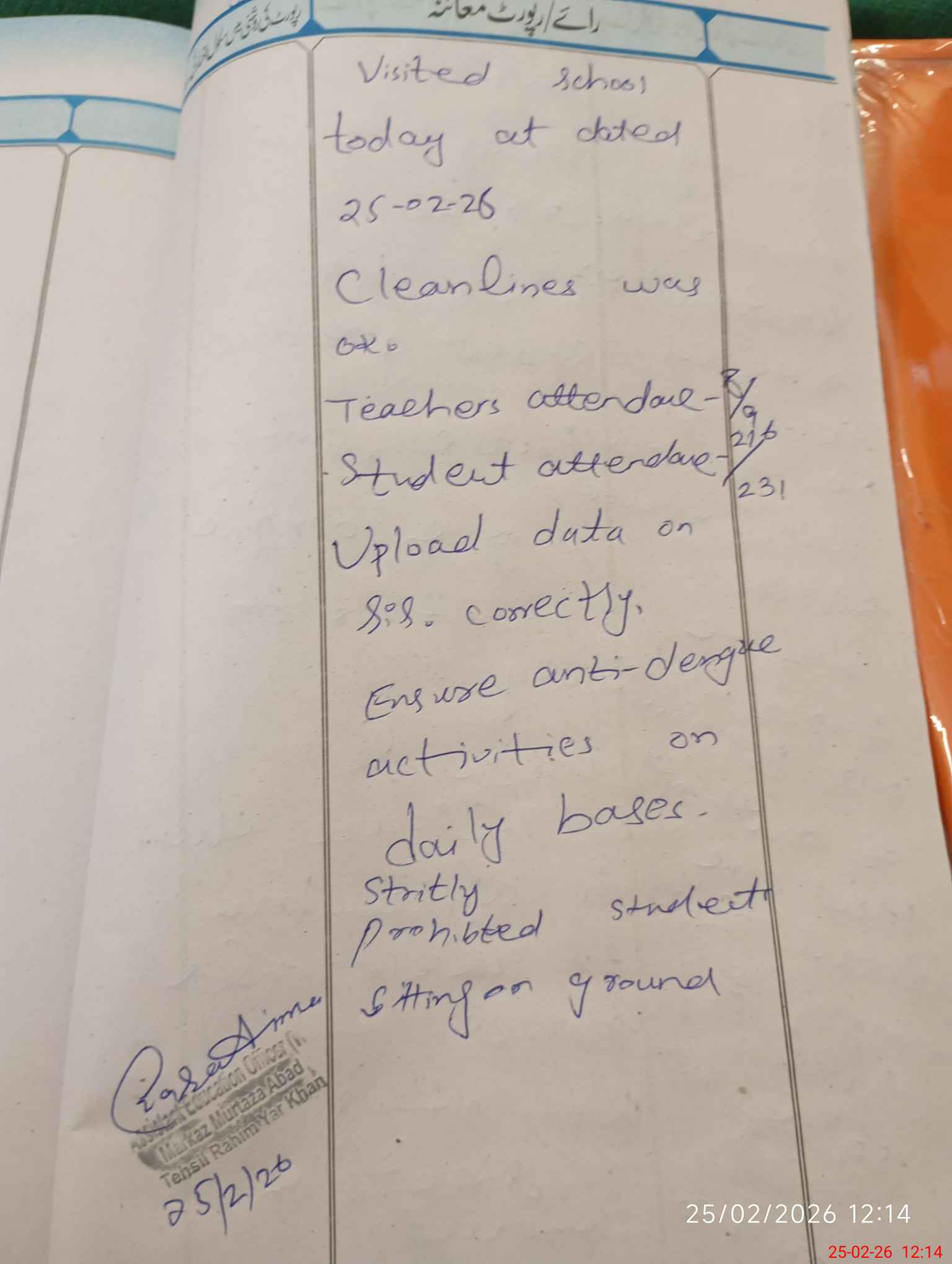 | Certified that this School was Inspected by the Undersigned MEA/DMO Today and the Information Stated Above is as Per Record. | |||||