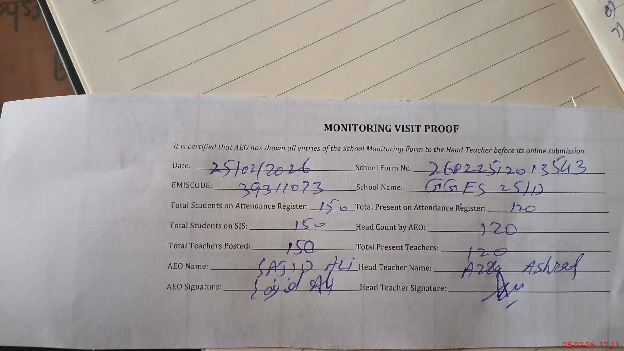 | EMIS Code: 39311073 | Name of School: GGES CHAK NO. 25/D | |||