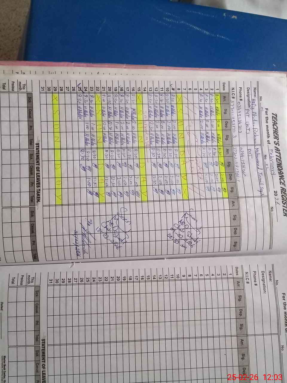 | Name: HA**** AB**** R,**** Designation: (School Headmaster's/Headmistress's) Headmaster Phone/Cell Number: 03**** |