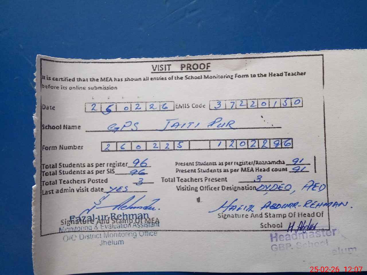 | EMIS Code: 37220150 | Name of School: GPS JATTI PUR | |||