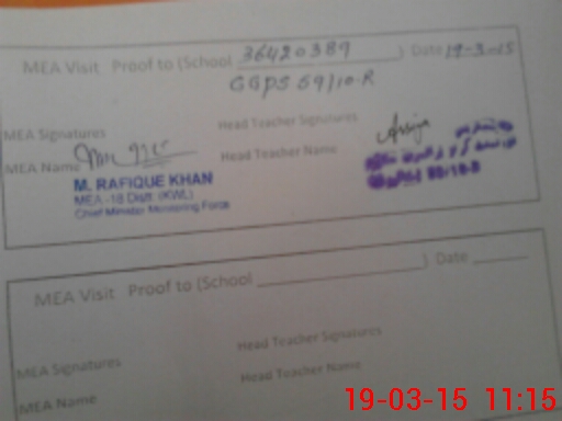 | Certified that this School was Inspected by the Undersigned MEA/DMO Today and the Information Stated Above is as Per Record. | |||||