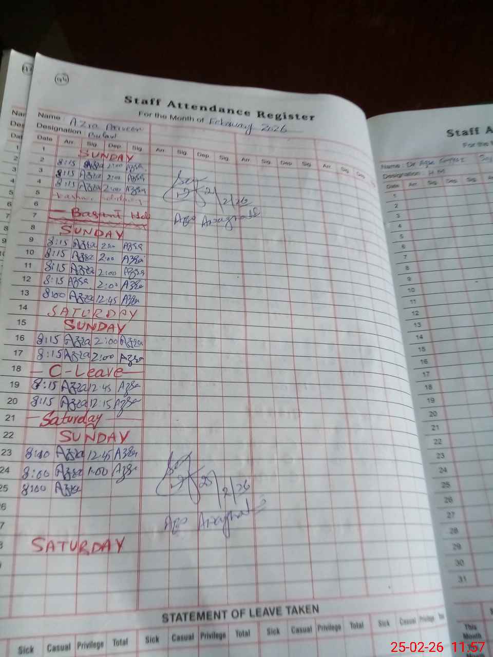 | Leave | Duty | Absent | Maternity | Medical | Ex- Pak |