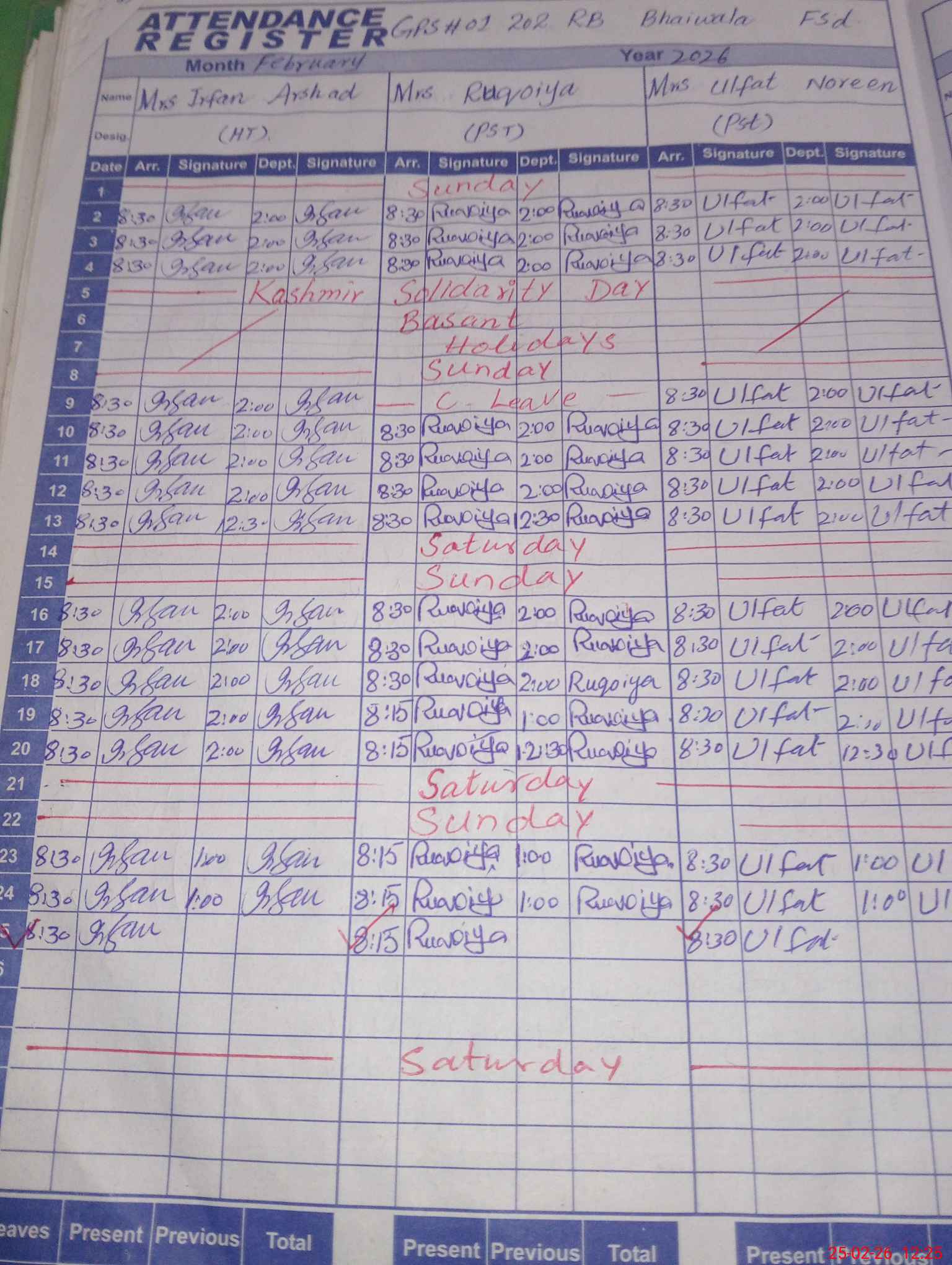 | Name: IR**** AR**** Designation: (School Headmaster's/Headmistress's) PST Phone/Cell Number: 03**** |