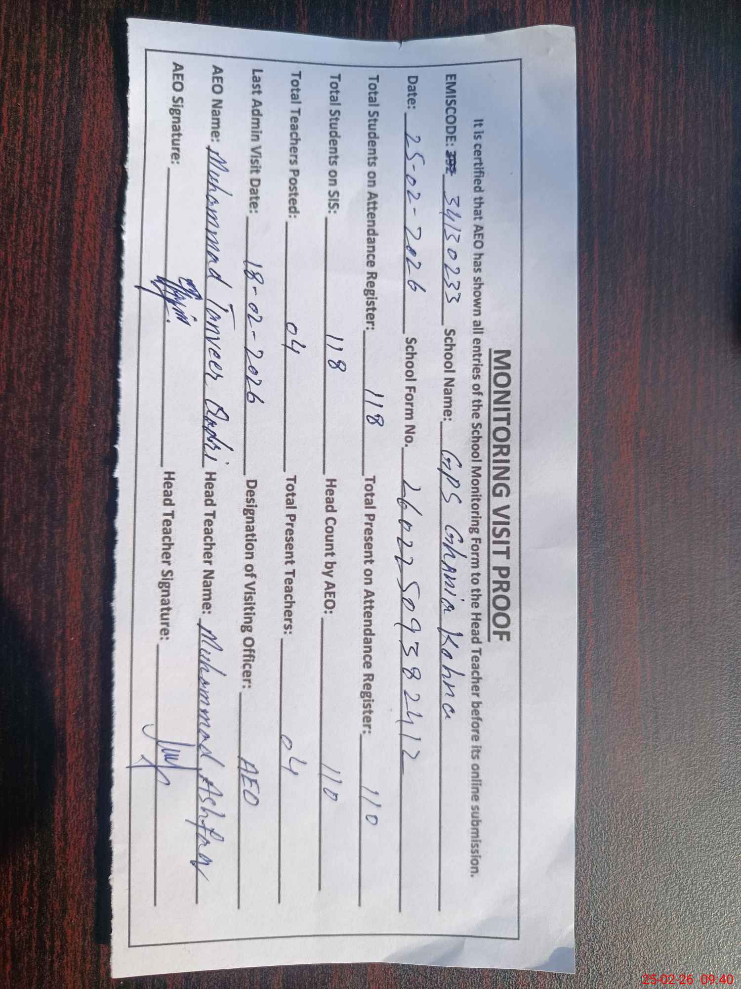 | EMIS Code: 34130233 | Name of School: GPS GHANIAN KOHNA | |||