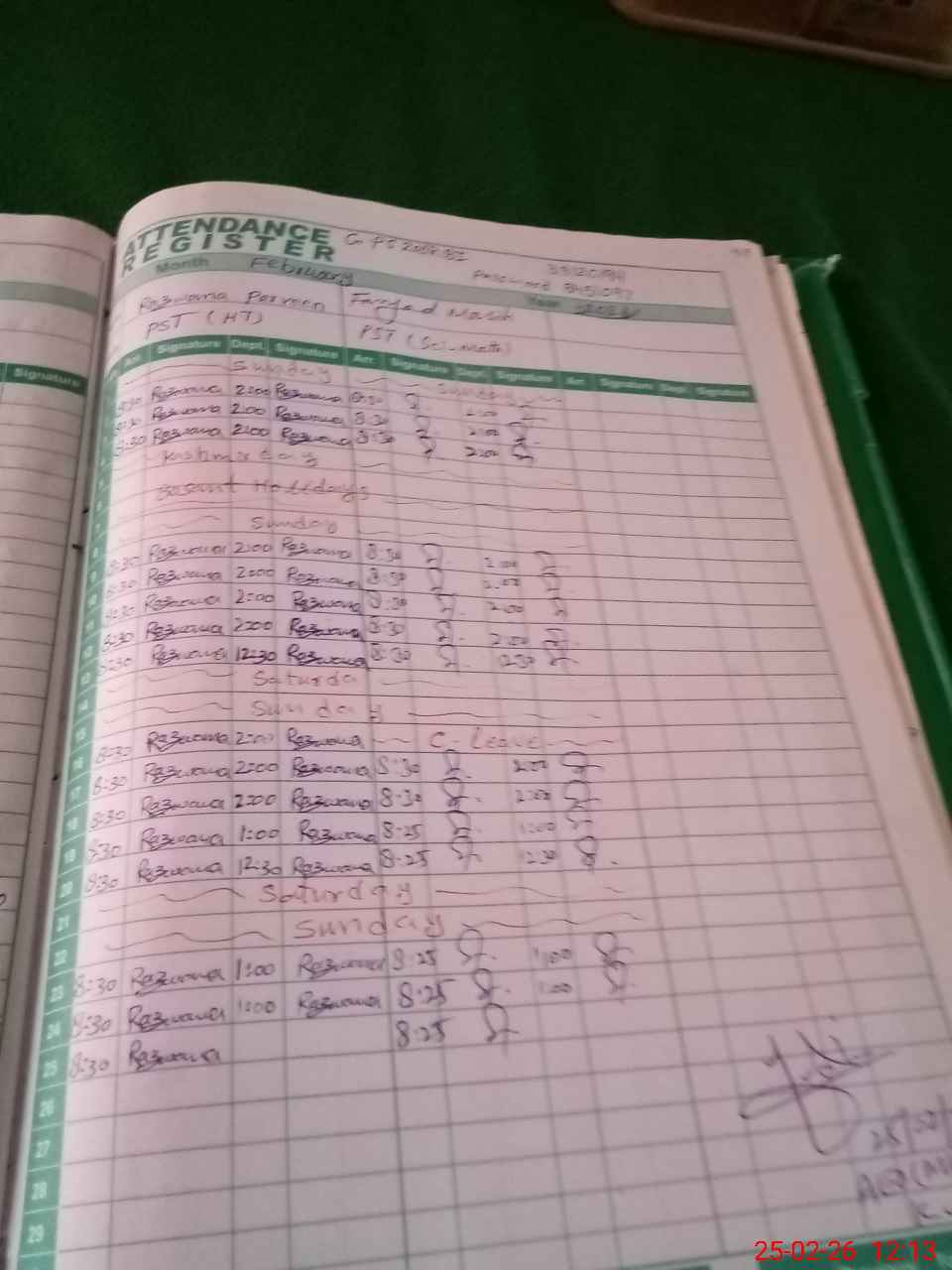 | CNIC | Full Name | Designation | R/C | Absence During Last Calender Month |