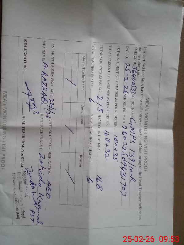 | EMIS Code: 36440533 | Name of School: GMPS 139/10-R JADEED, JAHANIAN | |||