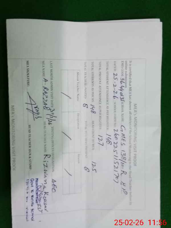 | Attendance Register | Head Teacher | MEA with School | Visit Proof |