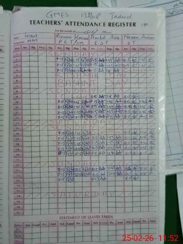 | Name: BU**** IR**** Designation: (School Headmaster's/Headmistress's) S.S.T(G) Phone/Cell Number: 03**** |