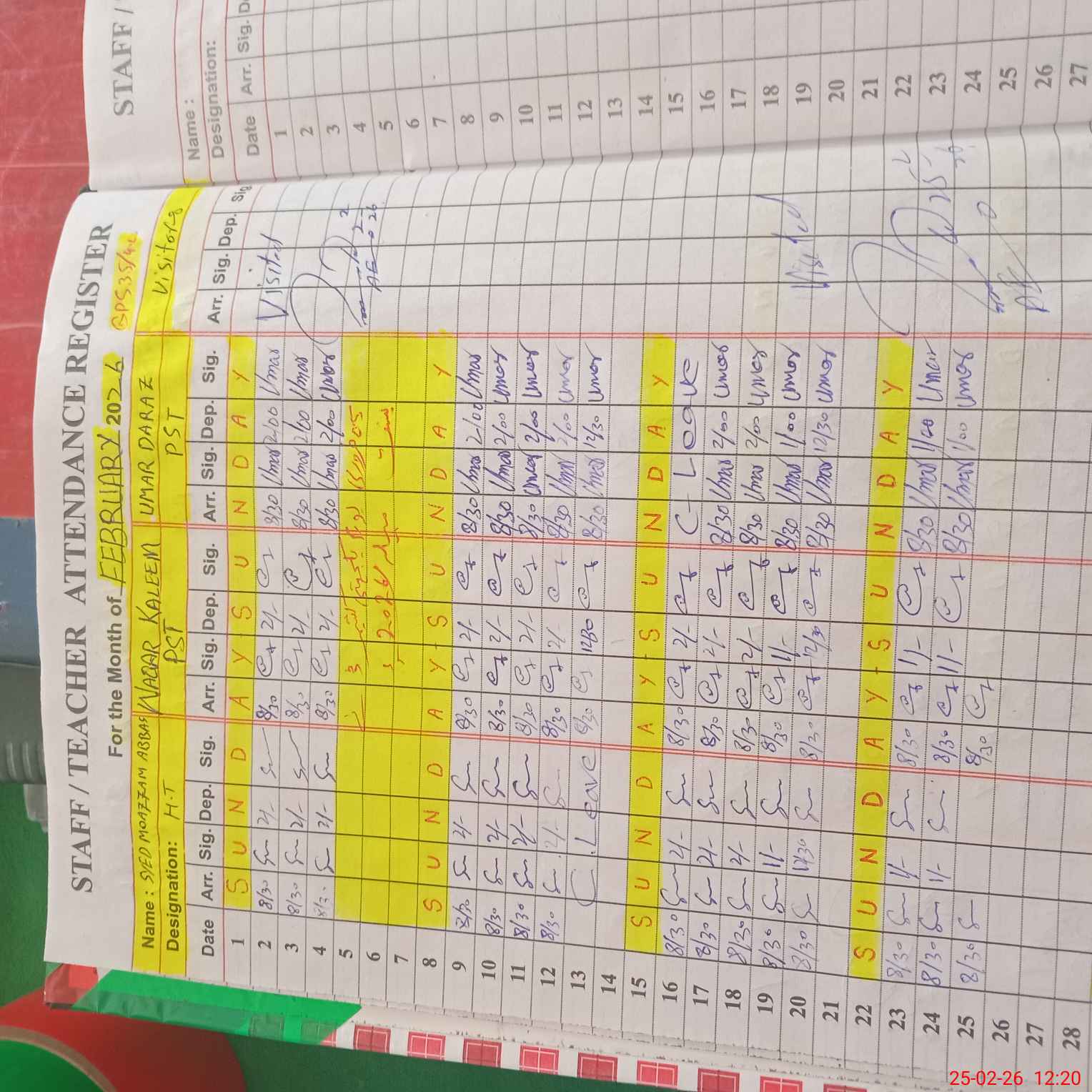 | Leave | Duty | Absent | Maternity | Medical | Ex- Pak |